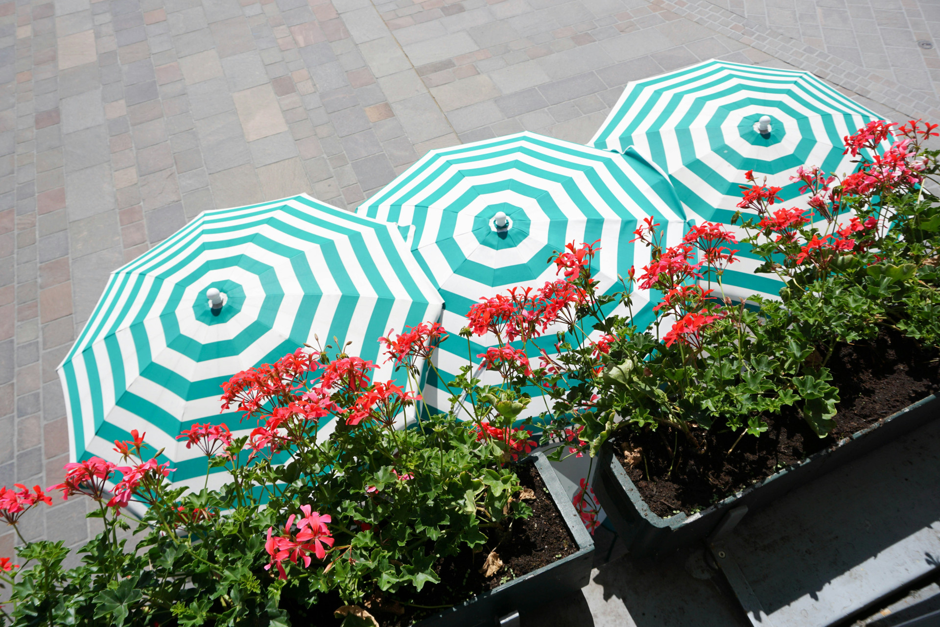 Töpfe, die dem Balkon, der Terrasse und dem Garten Leben verleihen